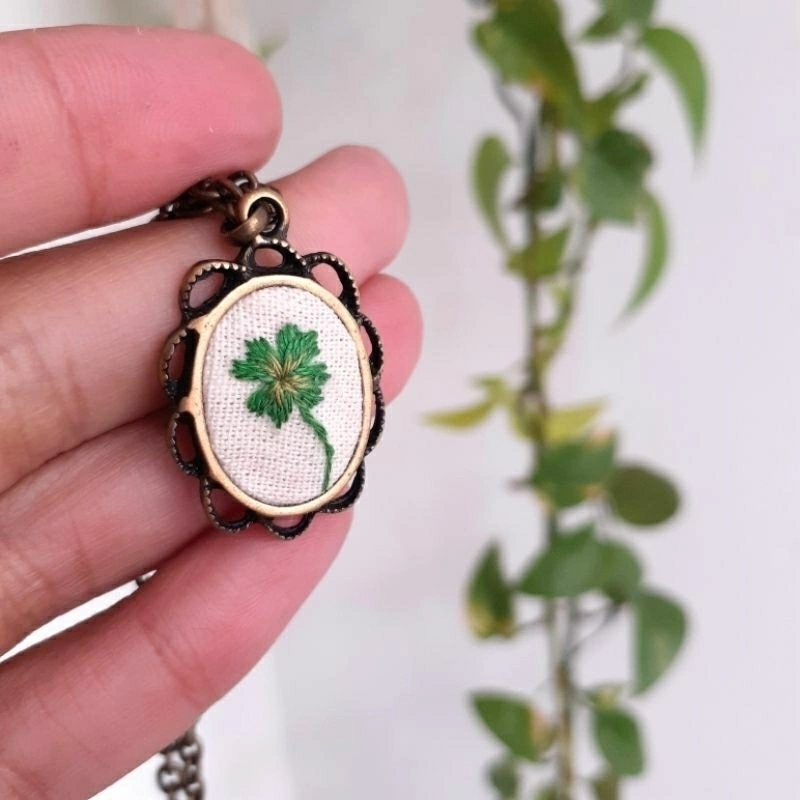 acessórios, bordado livre, dia das mães, presente criativo, pingente, planta, artesanal, trevo, símbolo