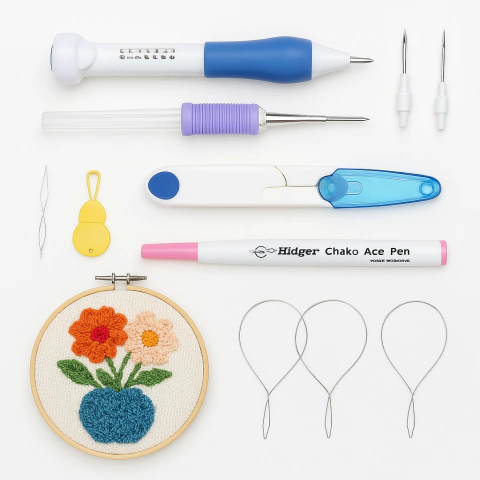 bordado ponto russo punch needle, estojo com materiais para bordar, kit para bordar, básico